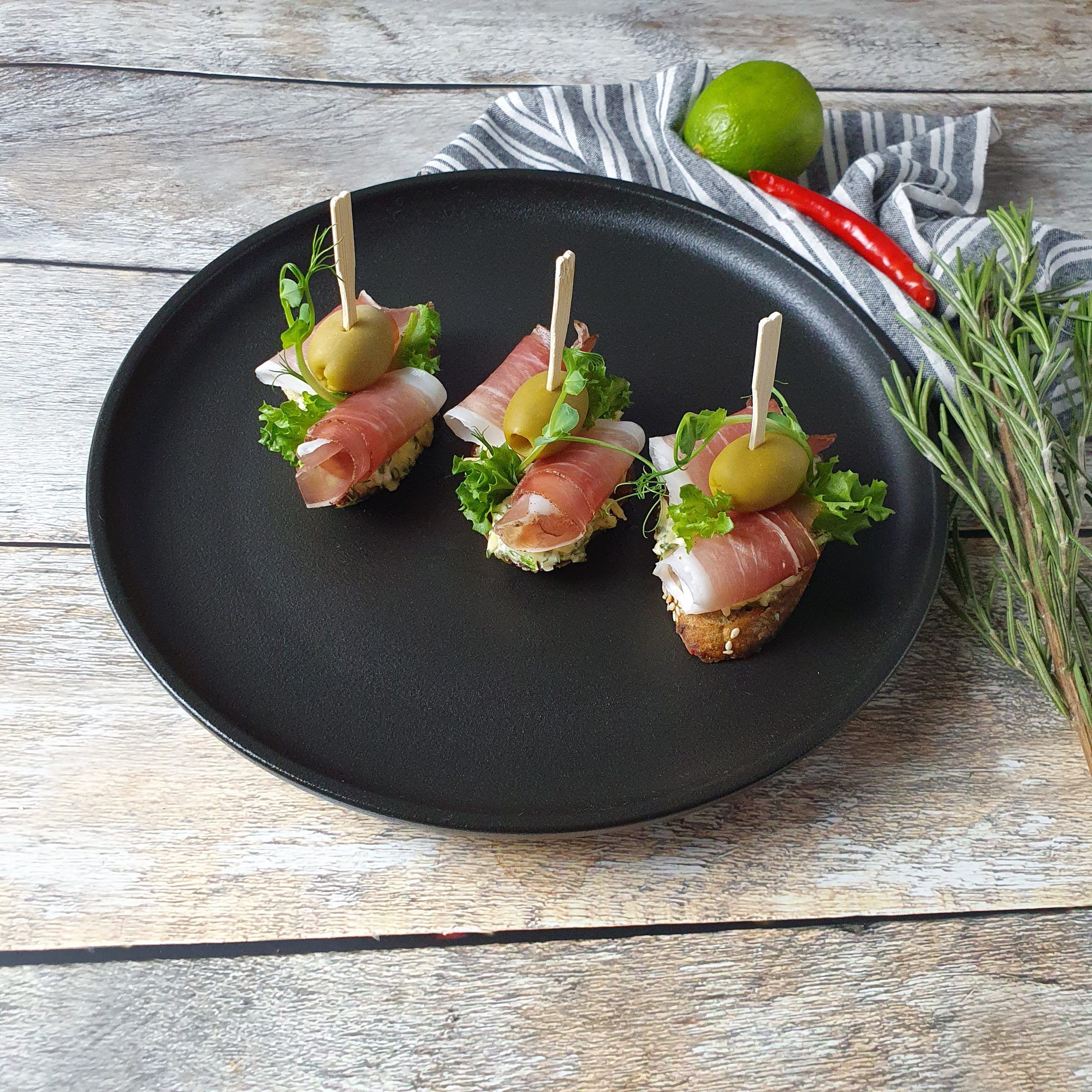 - Брускетта с Пармской ветчиной, каперсами и рукколой