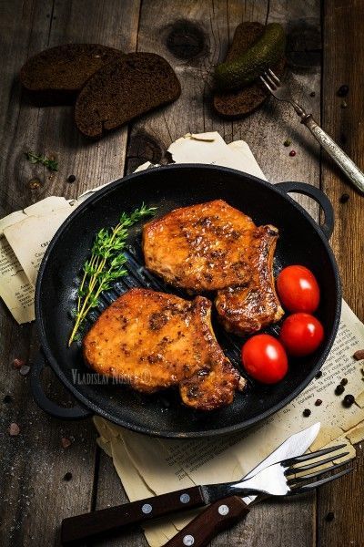 - Запеченная свиная корейка с вешенками и томатами под сыром